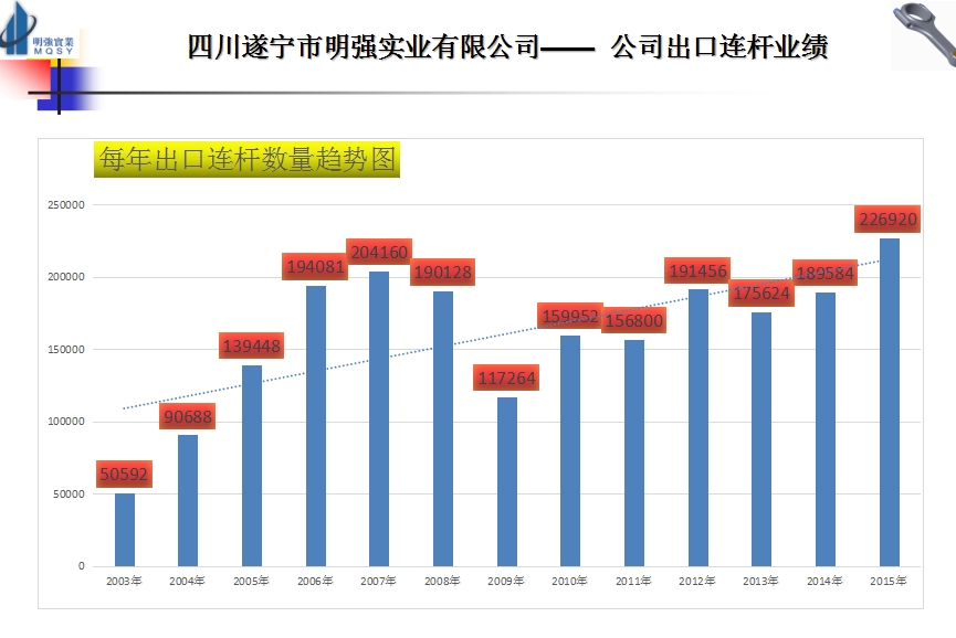 四川遂寧市明強(qiáng)實(shí)業(yè)有限公司—— 公司出口連桿業(yè)績(jī)